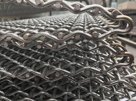 不锈钢轧花网的材质有不锈钢丝301 、 302 、304 、304L 、316 、316L 、321成品的特点:耐热,耐酸,耐碱,耐腐蚀,耐磨损,结构宽固。编织特点是先轧后编,双向弯曲,双向隔波弯曲,单向弯曲。 主要用于食品、矿业、化工、医药、石油、冶金、机械、防护、建筑、工艺品等行业。 黑钢轧花网主要用于矿山、煤厂、建筑、石油化工、建筑机械等地。 它是预先弯曲成波纹形式金属丝,使两个弯曲卡在相对位置,保证网孔大小。 材质: 黑钢丝、白钢丝、铅丝、不锈钢丝等; 它的编织及特点: 先轧后编,双向隔波弯曲、紧锁弯曲、平顶弯曲、双向弯曲、单向隔波弯曲;结构坚固